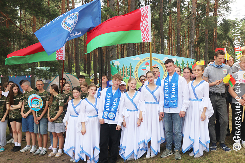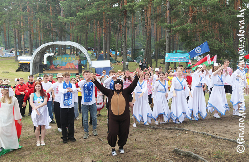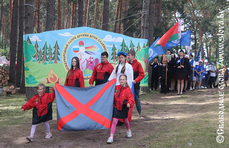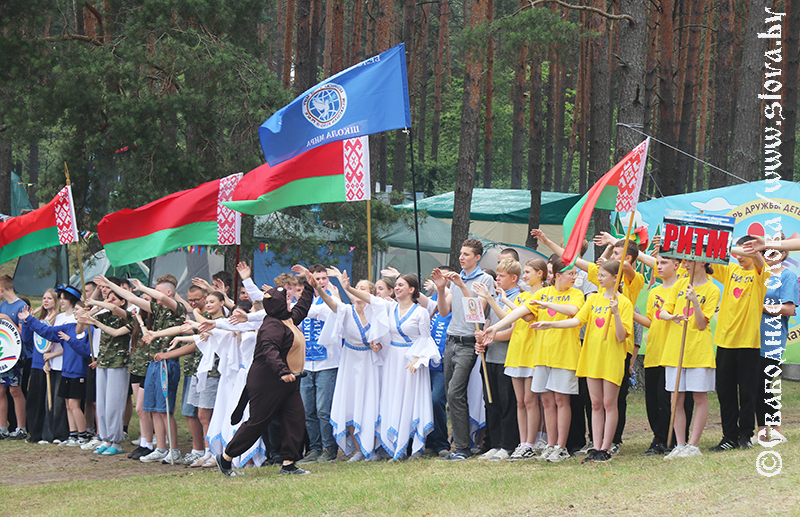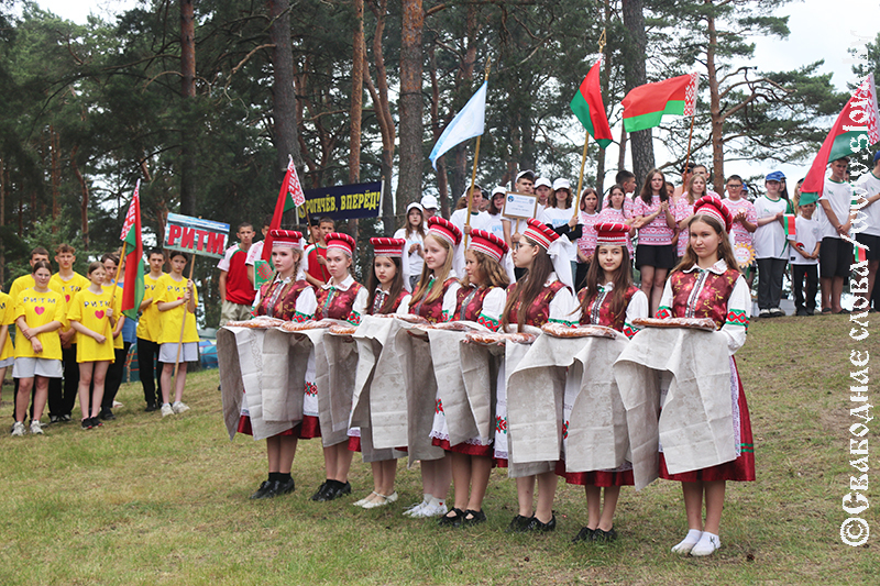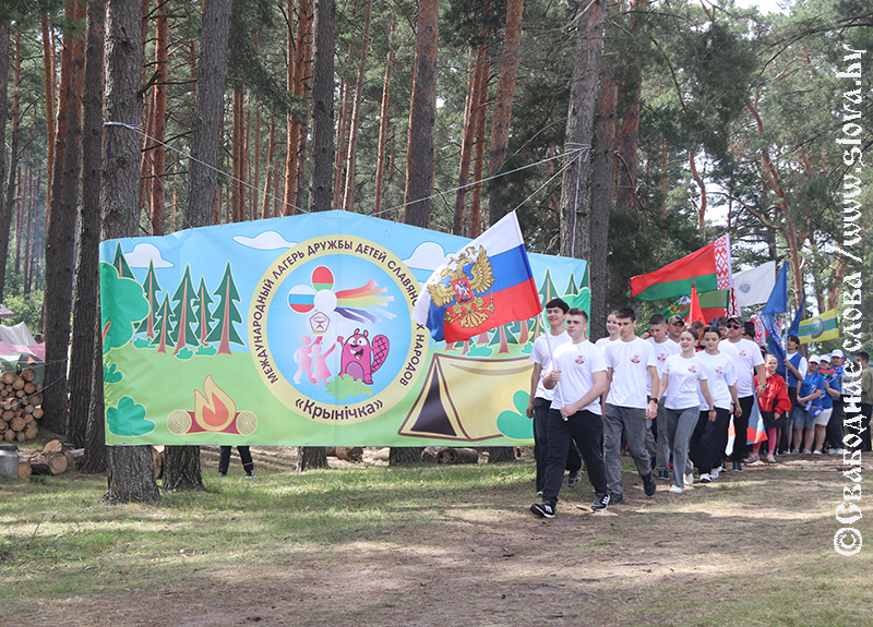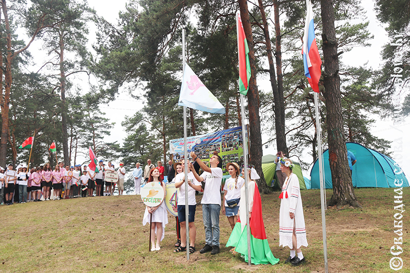 Торжественное поднятие государственных флагов Беларуси, России и «Крынічкі», радушное угощение караваями гостевых делегаций, задорные танцы с главным жителем лагеря – веселым Бобриком, жизнеутверждающие музыкальные номера от юных артистов: каждый момент церемонии открытия оставил в душах зрителей приятное послевкусие и настроил на веселый отдых.