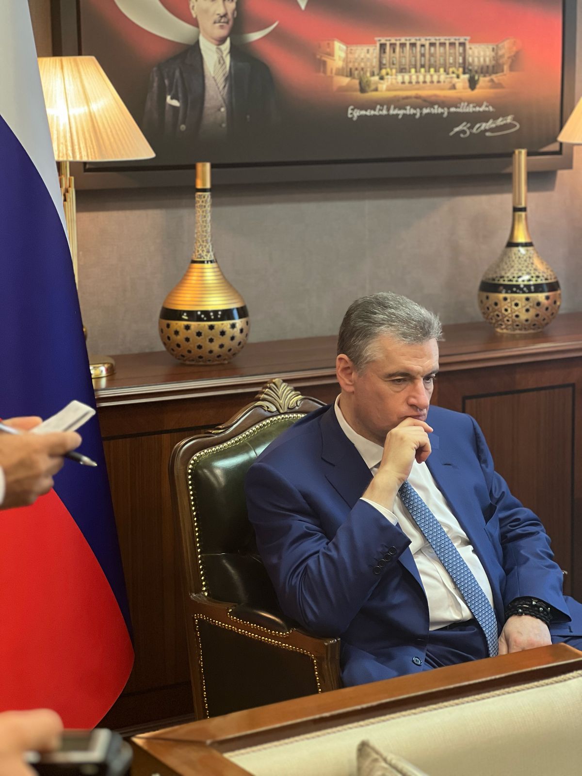 Председатель комитета Госдумы РФ по международным делам, Президент Советского фонда мира Леонид Слуцкий в ходе официального визита в Турцию встретился с главой комиссии по международным делам Парламента Турции Фуатом Октайем.